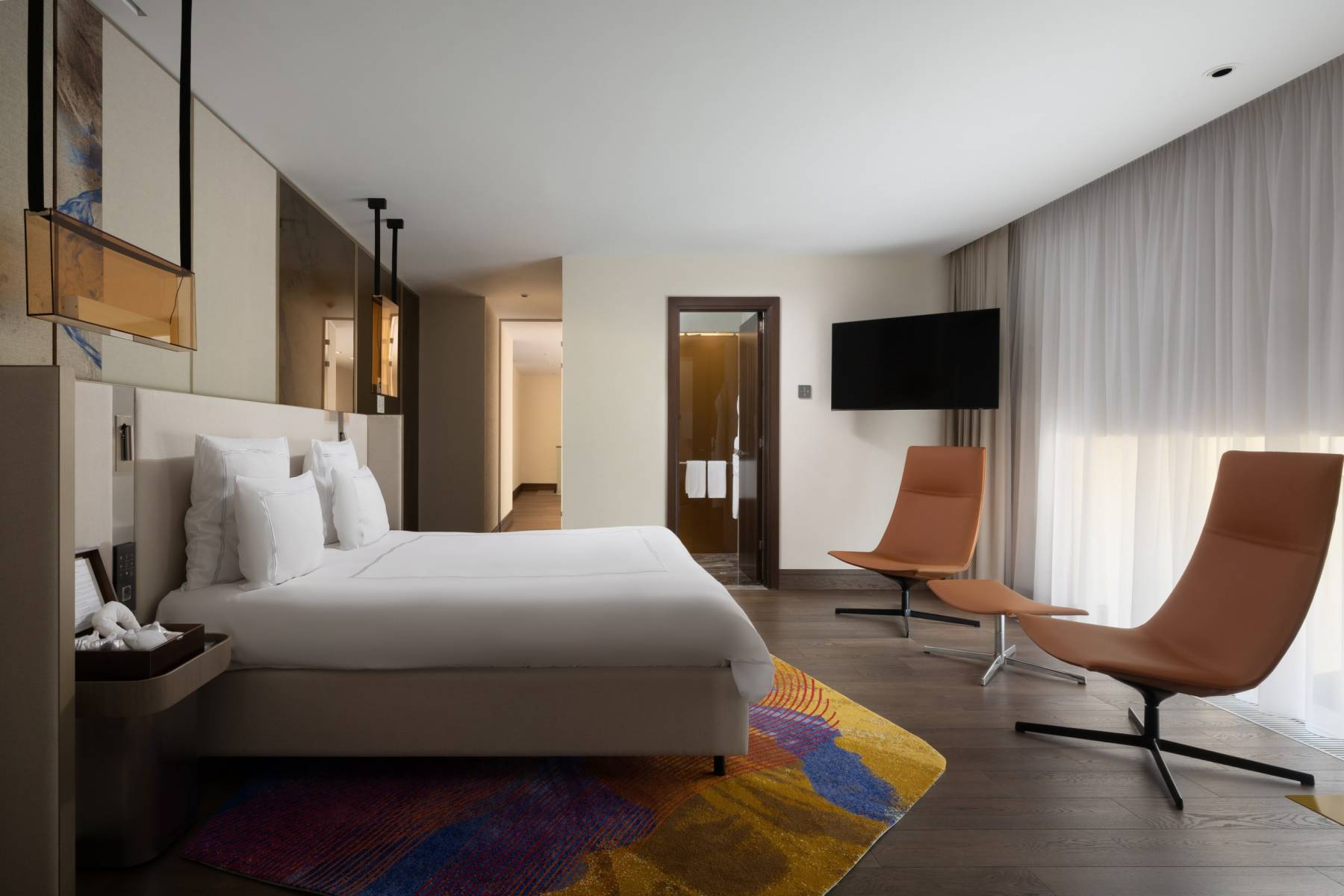 Стильный двухуровневый люкс, единственный в своем роде — расположен в главном историческом здании отеля. Прекрасно подходит не только для длительного пребывания с семьей, но и для работы вне офиса. В номере два уровня: гостиная с раскладным диваном на первом уровне и спальня на втором, санузлы на каждом этаже.
